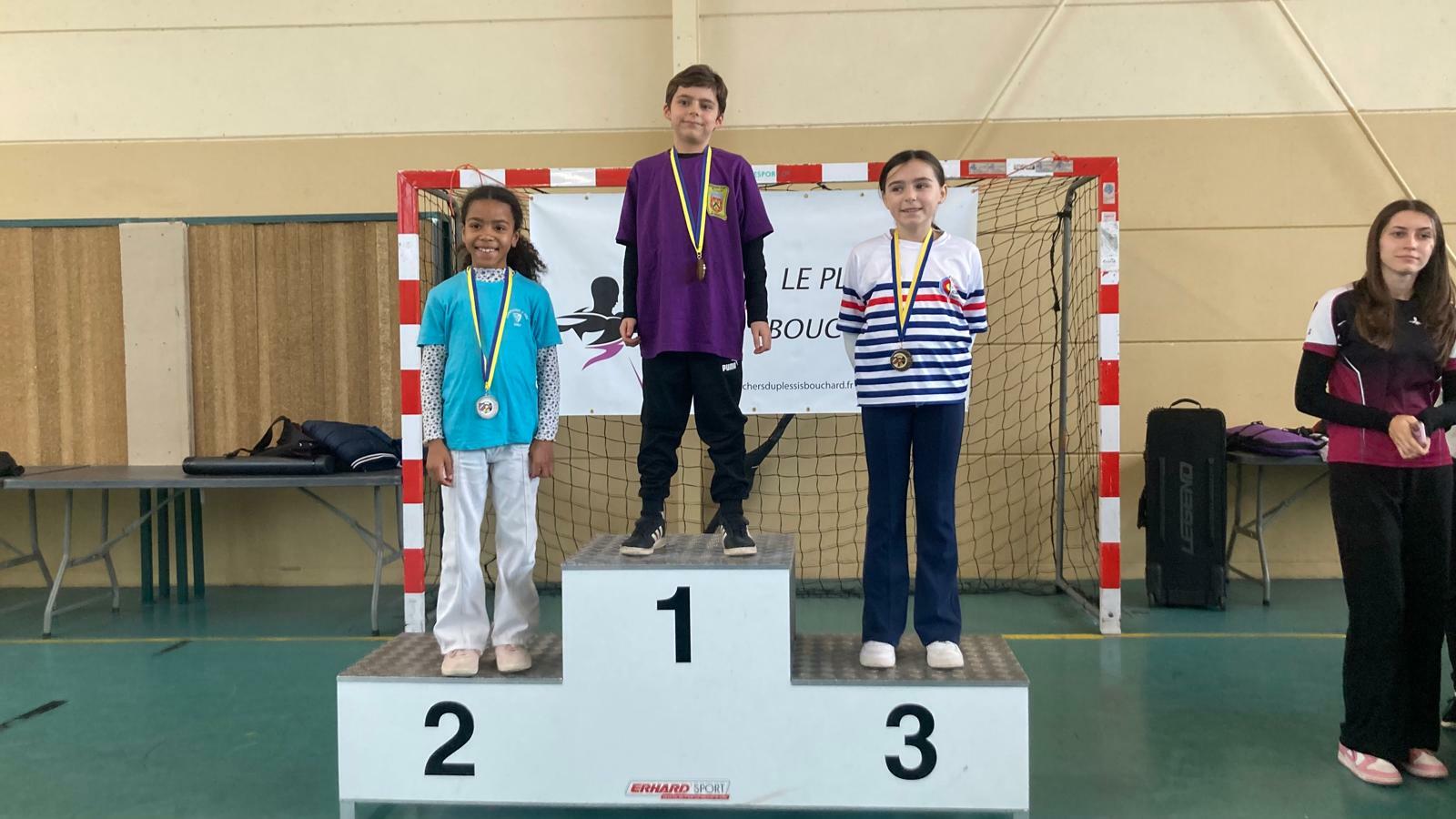 Le 8 décembre, Jade, Margot, Tyssia, Angéla et Camille accompagnés de leurs parents, de Giovanni et Gipé se sont donnés rendez vous au Plessis Bouchard pour la 1ère épreuve du nouveau dispositif des P'tits Bouts. Bonne ambiance avec malgré tout de la concentration. Découverte des duels pour plusieurs et leur lot de stress .....positif bien sûr. De beaux duels gagnés et une seconde place pour Tyssia