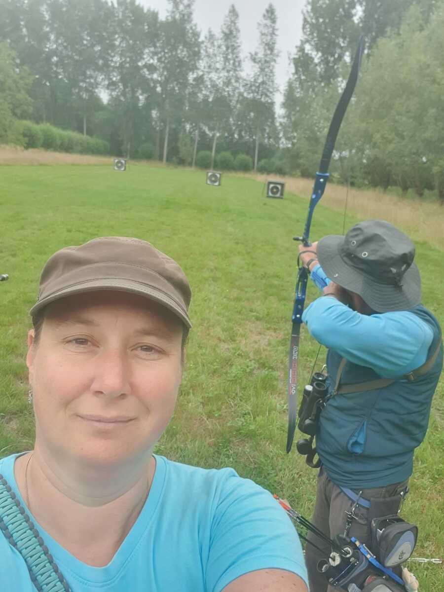 Samedi 12 juillet, c'est sous des températures fraiches que nos archers débutent cette journée, mais le soleil viendra les réchauffer, malgré une cible atypique, Patrick termine 6eme avec 290 points, et Dorothée avec 370 point finit 3eme de cette première journée et bat son record personnel.