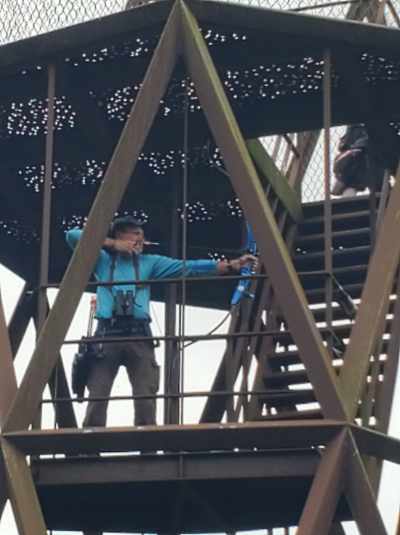 Dimanche 13 juillet, c'est reparti pour le 2eme parcours, cette fois le temps est nuageux, et nos archers vont prendre un peu de hauteur pour tirer certaines cibles.