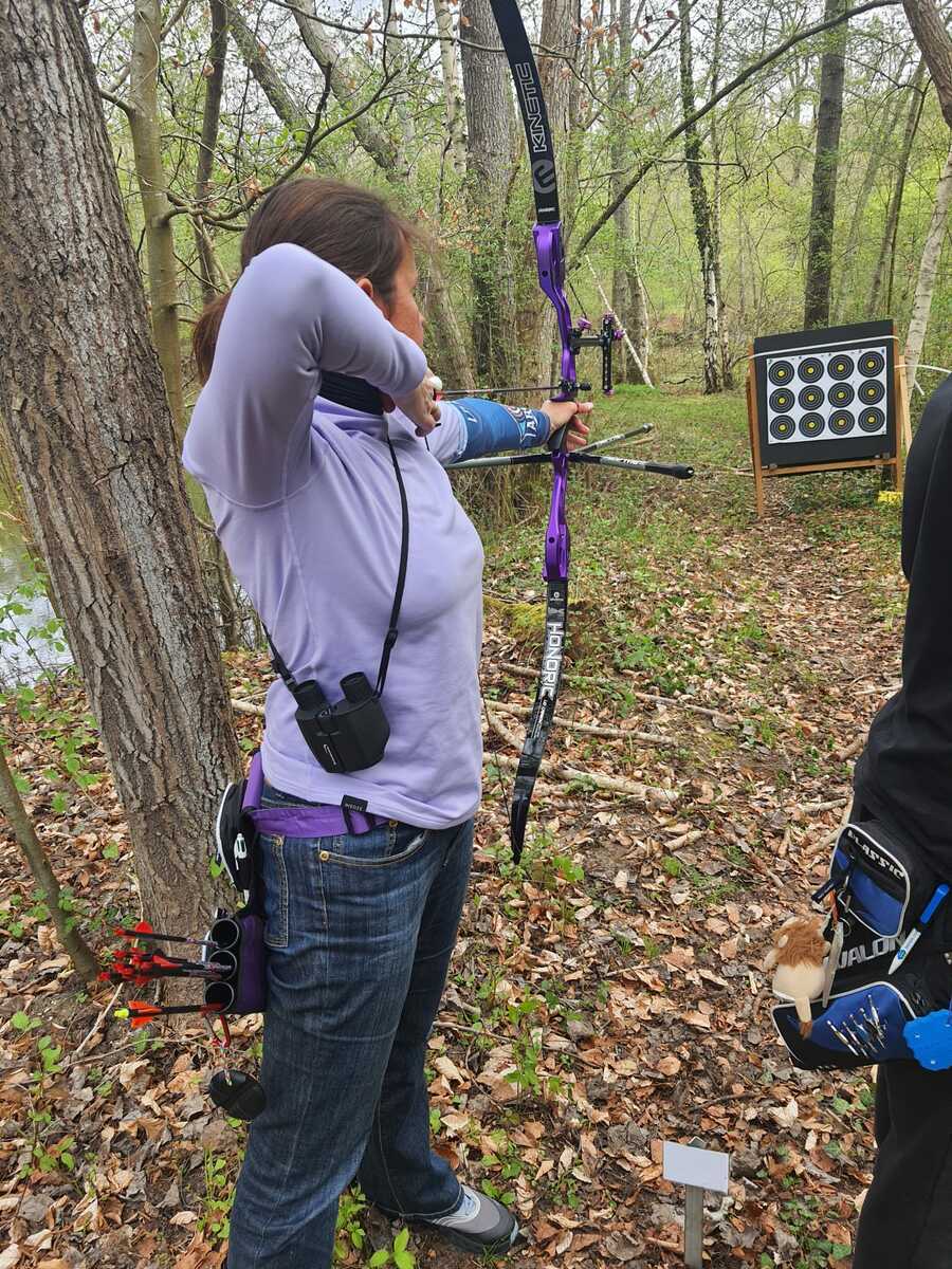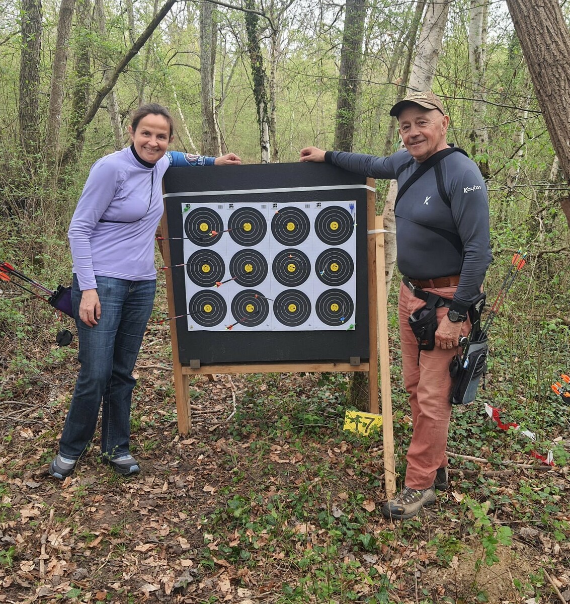 Toujours le 11 avril Gipé accompagnait Caroline pour son premier tir en campagne à Rethondes. Inscrit en Pro-first, notre débutante pouvait compter sur les conseils et indications du "pro". Bonne expérience, Caroline a apprécié et est prête à repartir. A suivre car pourquoi pas envisager une équipe campagne femmes avec Dorothée et Marie France.