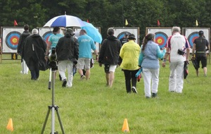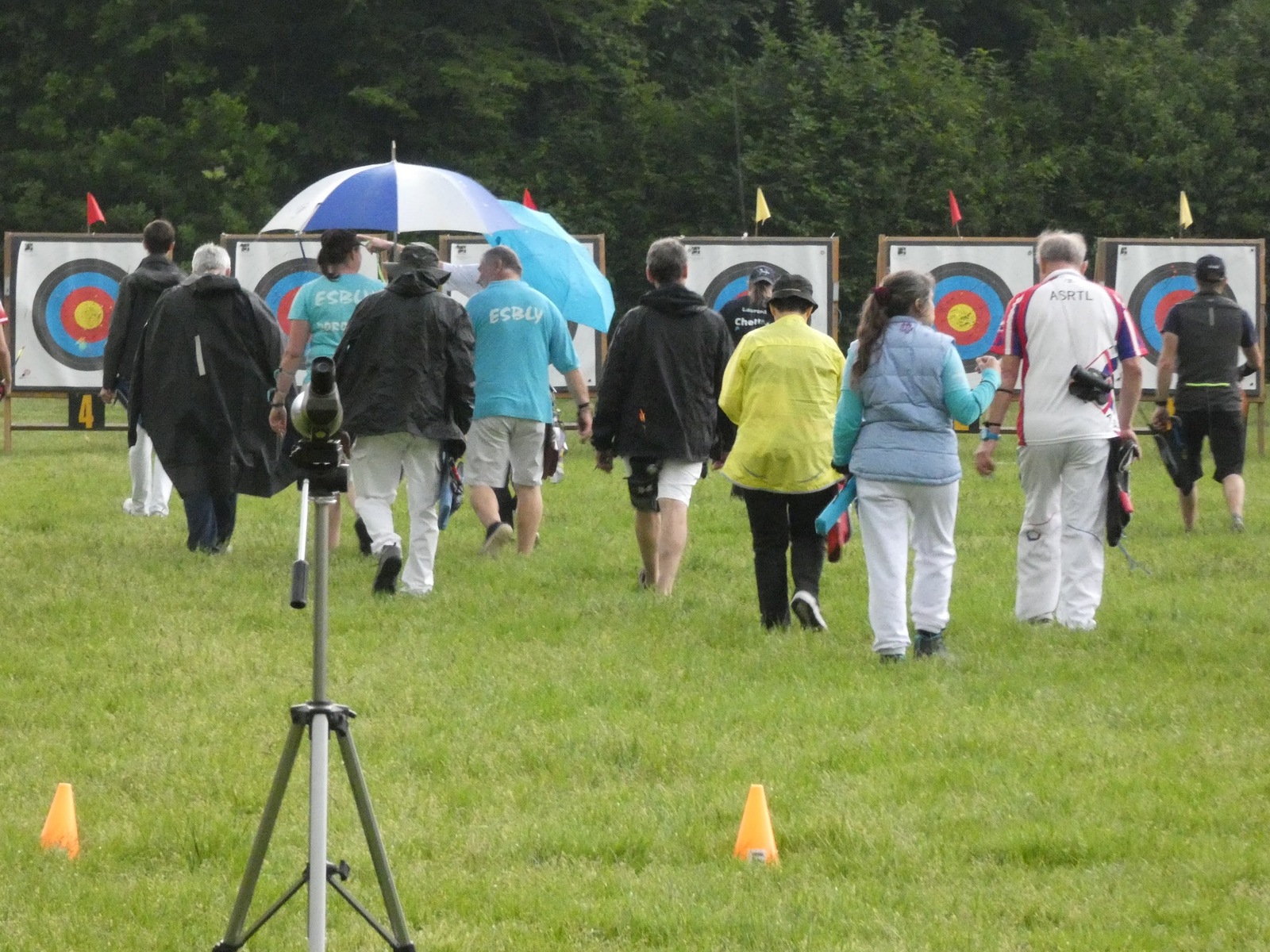 Après une pause, le tir reprend, mais l'orage s'abat sur nos archers dès la 1ère volée, ils se dépêchent de compter les points et se mettent à l'abri.