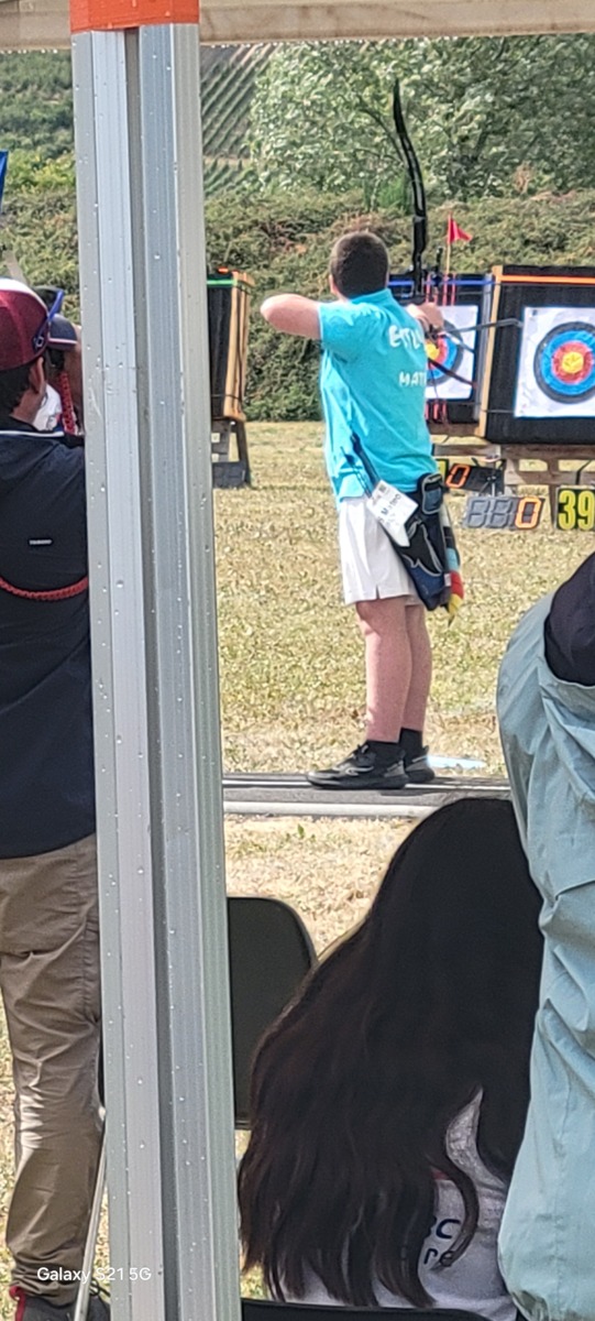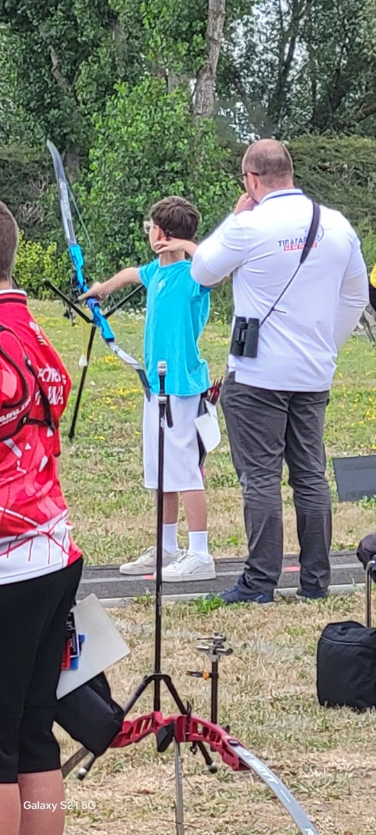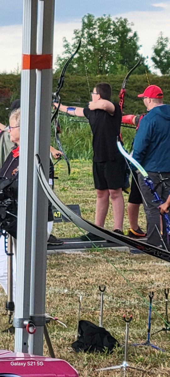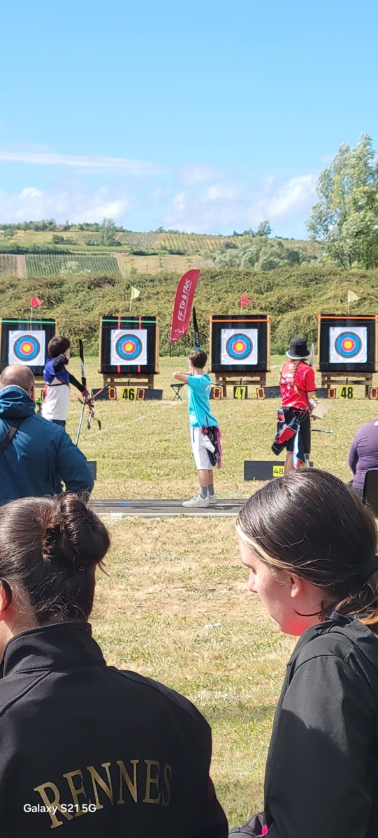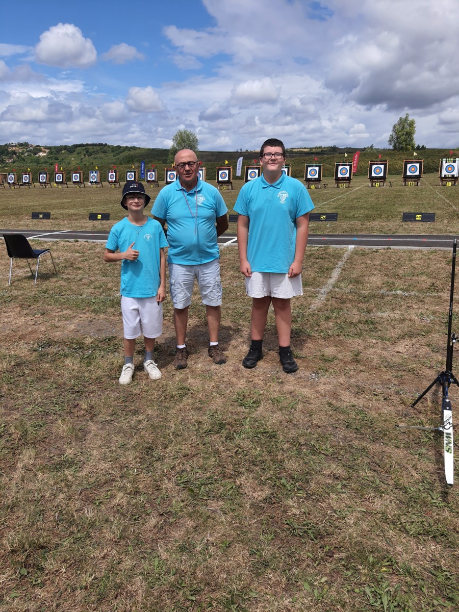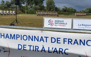 Le weekend du 19 et 20 jullet débutait la période des championnats de France. Et ce sont nos jeunes Paul et Matéo qui ouvrent les hostilités à Riom. Le temps n'est pas au rendez vous mais nos 2 bleuets passent le cut. Seul, Paul passe les16ème mais se fait éliminer en 8ème sur la flèche de barrage qui pourtant était 10 mais son adversaire fait 10+