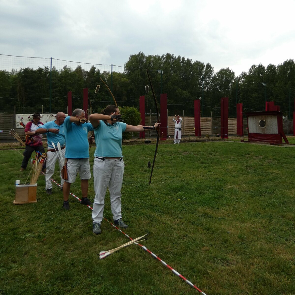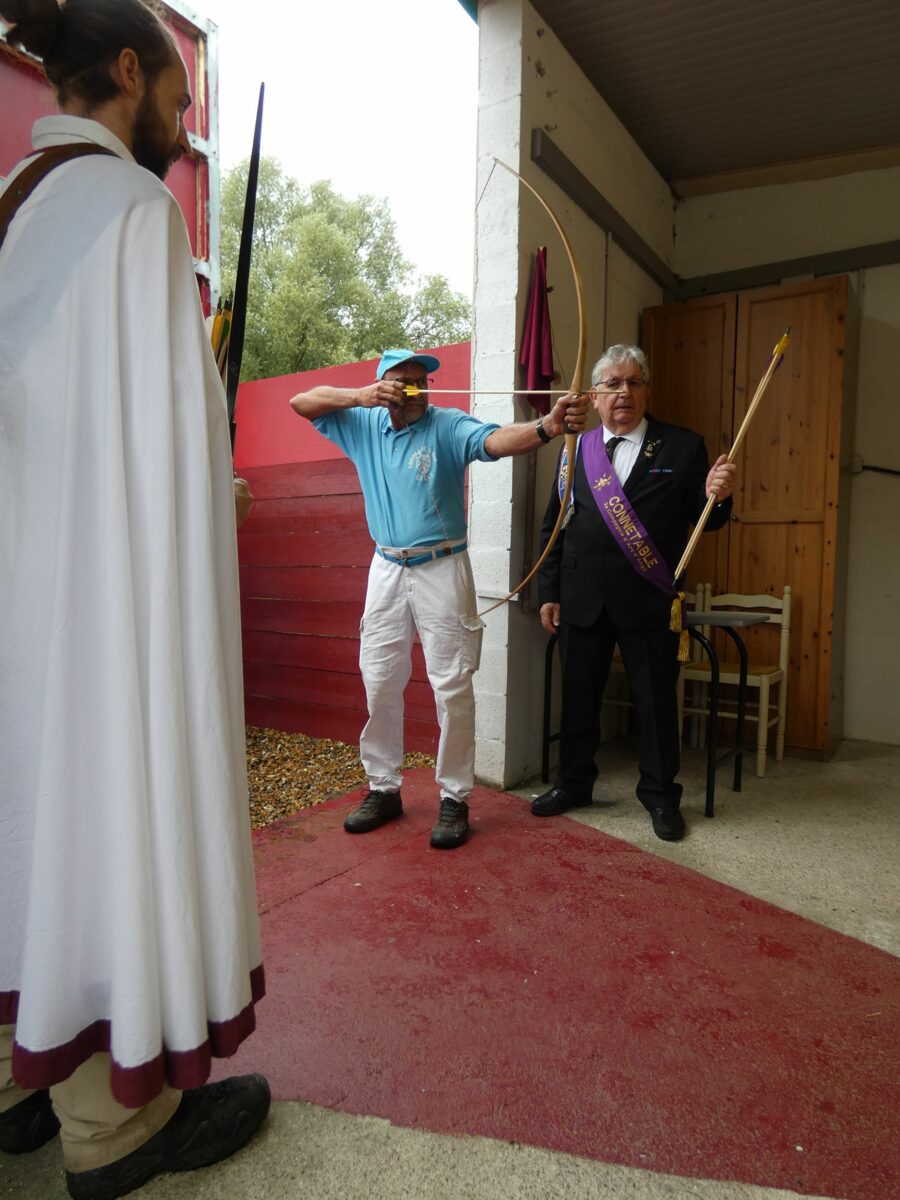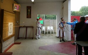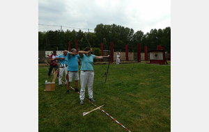 Après avoir partagé un repas, et avec le retour du soleil, nos archers ont pris part au tir à la baguette, où il faut viser, avec des flèches ayant des embouts en caoutchouc, des baguettes en bois de 80cm, plantées en terre entre 15 et 20 m. Les baguettes les plus éloignées rapportent plus de points.