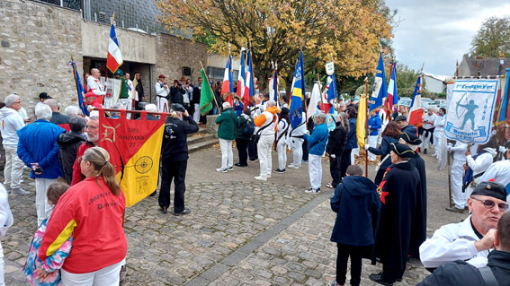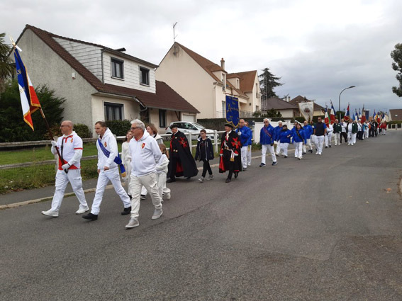 Le samedi 25 octobre, pendant que les copains travaillaient à refaire une beauté au jeu d'Esbly, le drapeau de la Compagnie a répondu à l’invitation de la Compagnie de Charny à l’occasion de son « réveil », après plus de 80 années de sommeil ! Belle journée de tradition aux côtés de nombreuses compagnies venues d’Île-de-France et des Hauts-de-France. 43 drapeaux et plus de 120 archers étaient présents. Après avoir défilé dans le village, Les archers ont ensuite effectué le tir du réveil sur les cibles aux couleurs de la compagnie de Charny. Les discours du capitaine, du maire, de la sénatrice et du capitaine d’Annet ont rappelé l’importance du patrimoine archer et des liens qui unissent les compagnies. La journée s’est clôturée par un pot amical dans une ambiance conviviale.