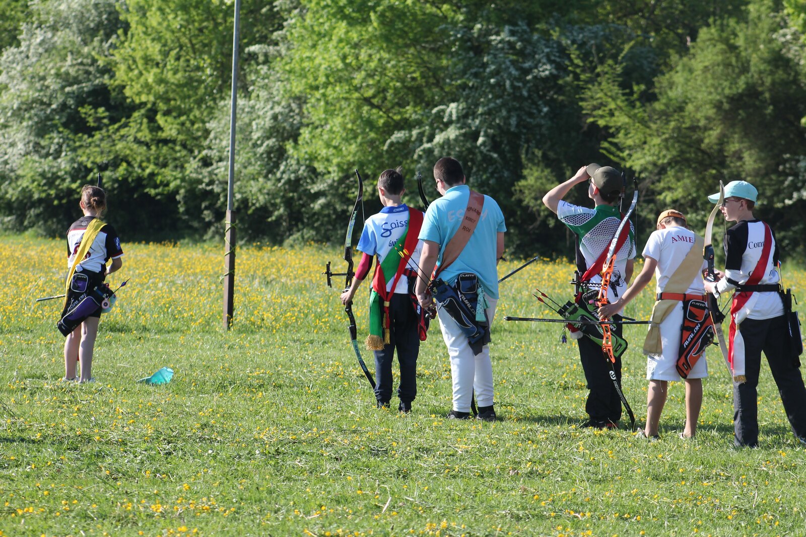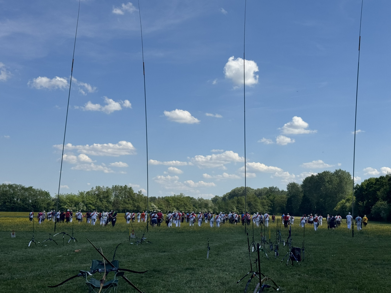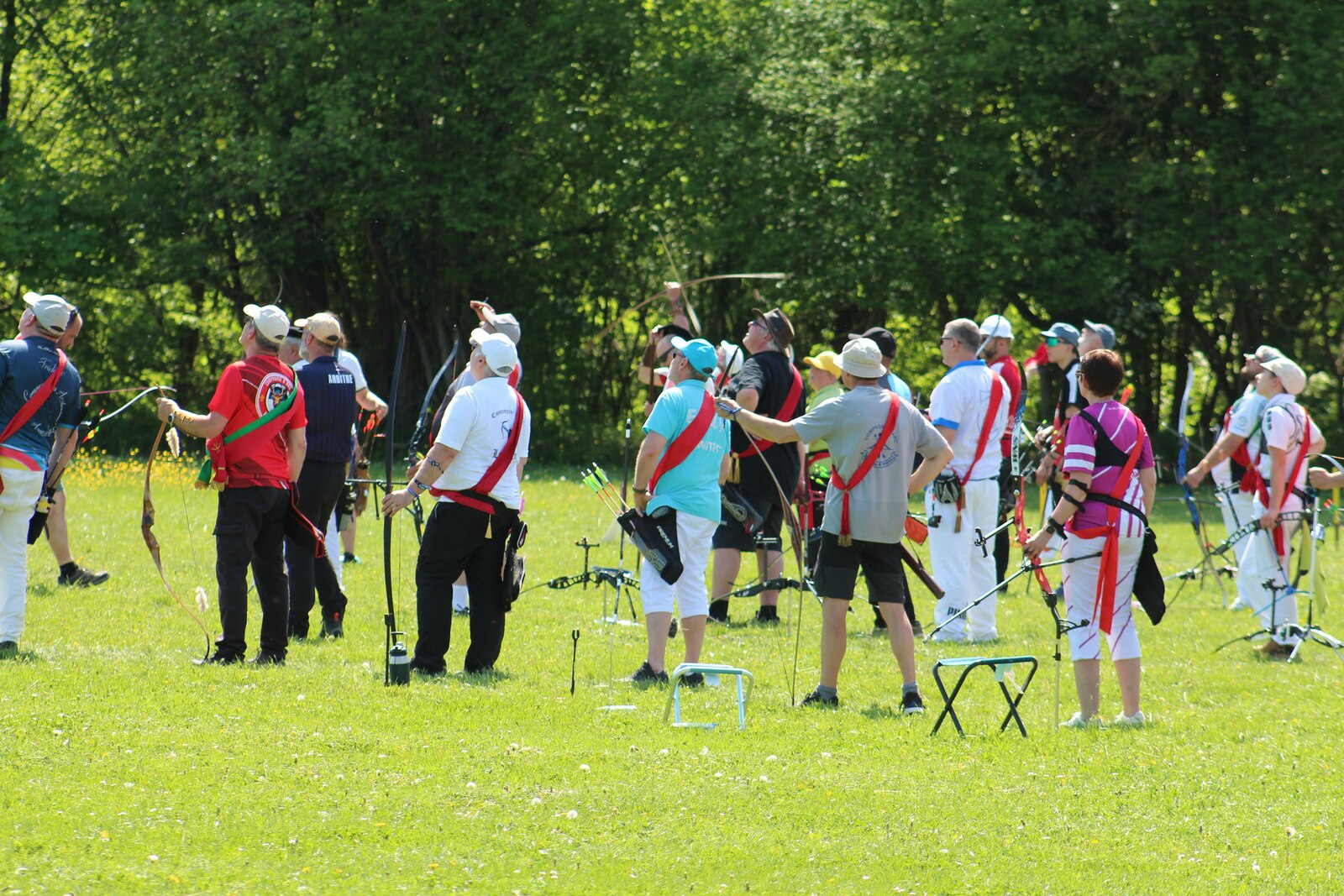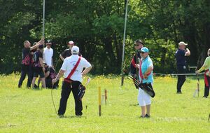 Après le salut des 5 perches par les drapeaux, les 62 roitelets venus de toute la France ont débuté le tir pour essayer de faire tomber les oiseaux perché à plus de 15m au dessus d'eux.