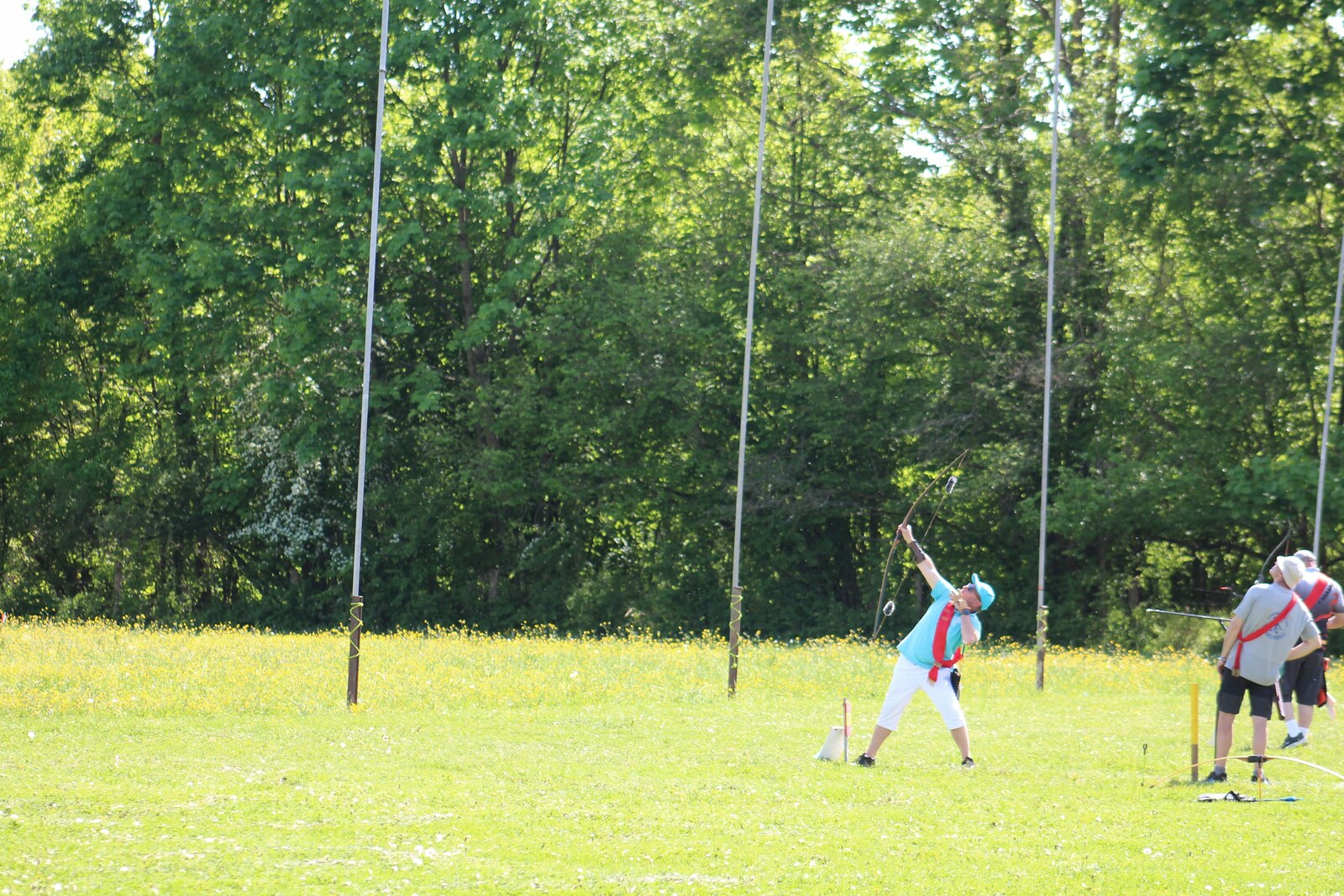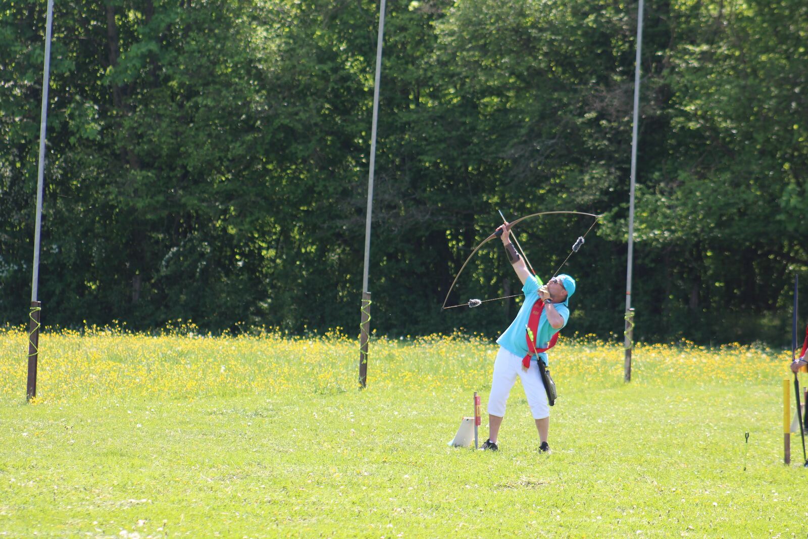 C'est sous un soleil de plomb et une température estivale, que notre Roy a commencé le tir en arc droit, de belles flèches proches de l'oiseau mais ce dernier narguera notre Roy toute l'après-midi.